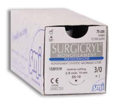 חוט תפירה PDS 3/0 נספג + מחט חותכת 1/12 TS24