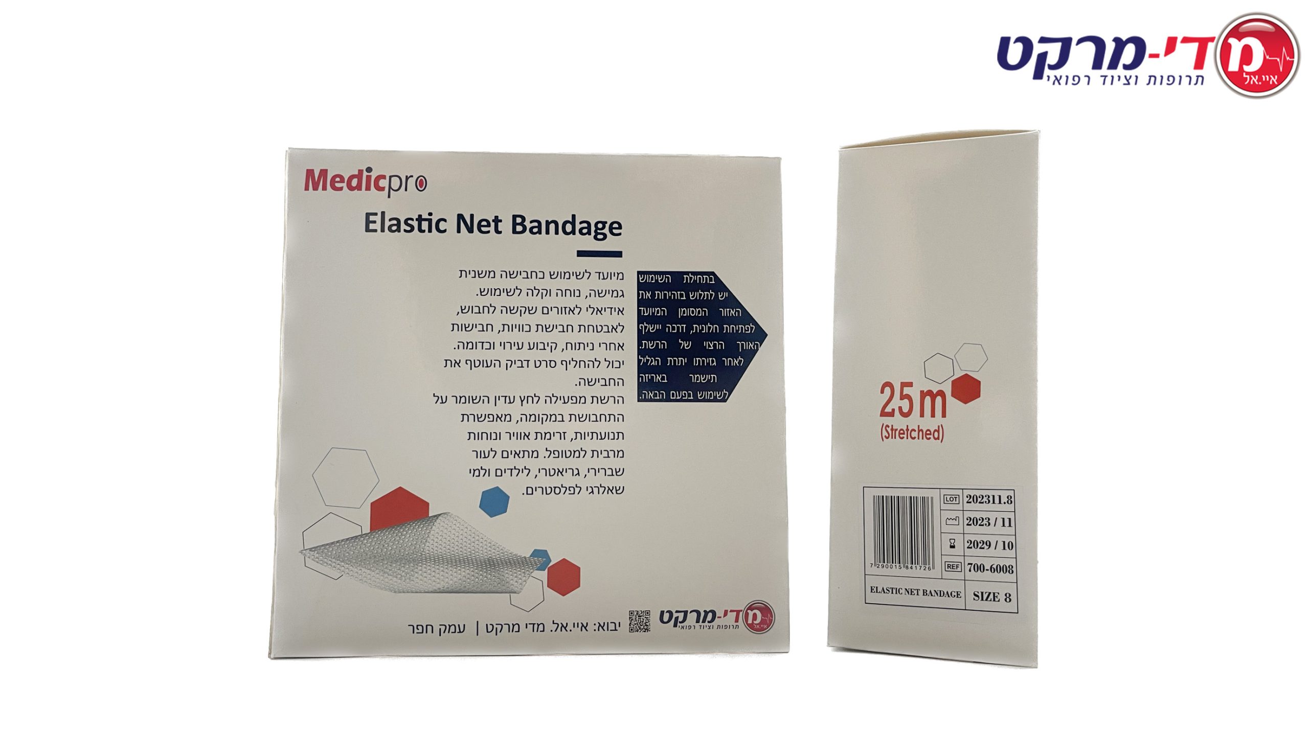 / רשת חבישה אלסטית 25 מטר מידה 8 מדיקפרו
