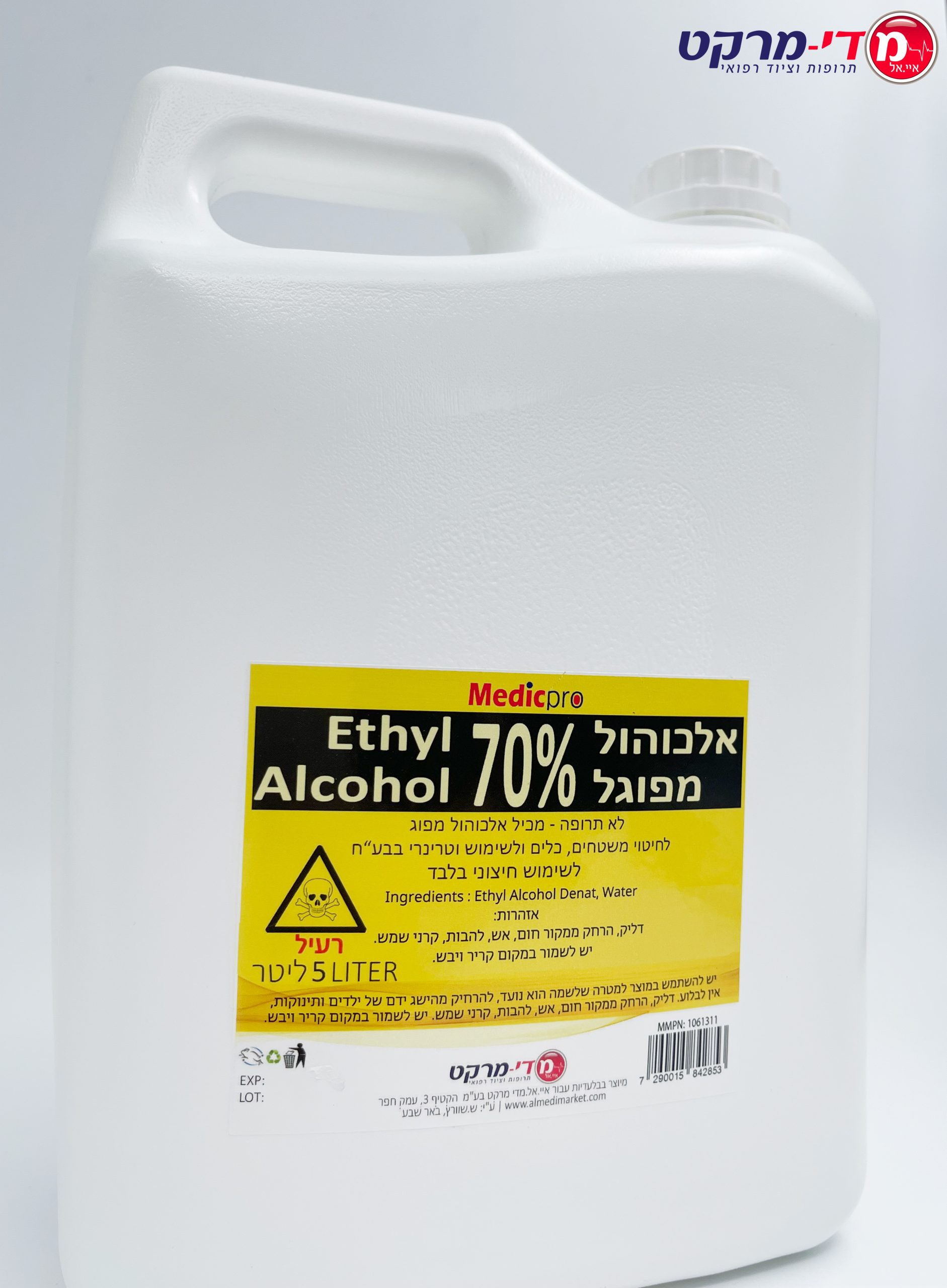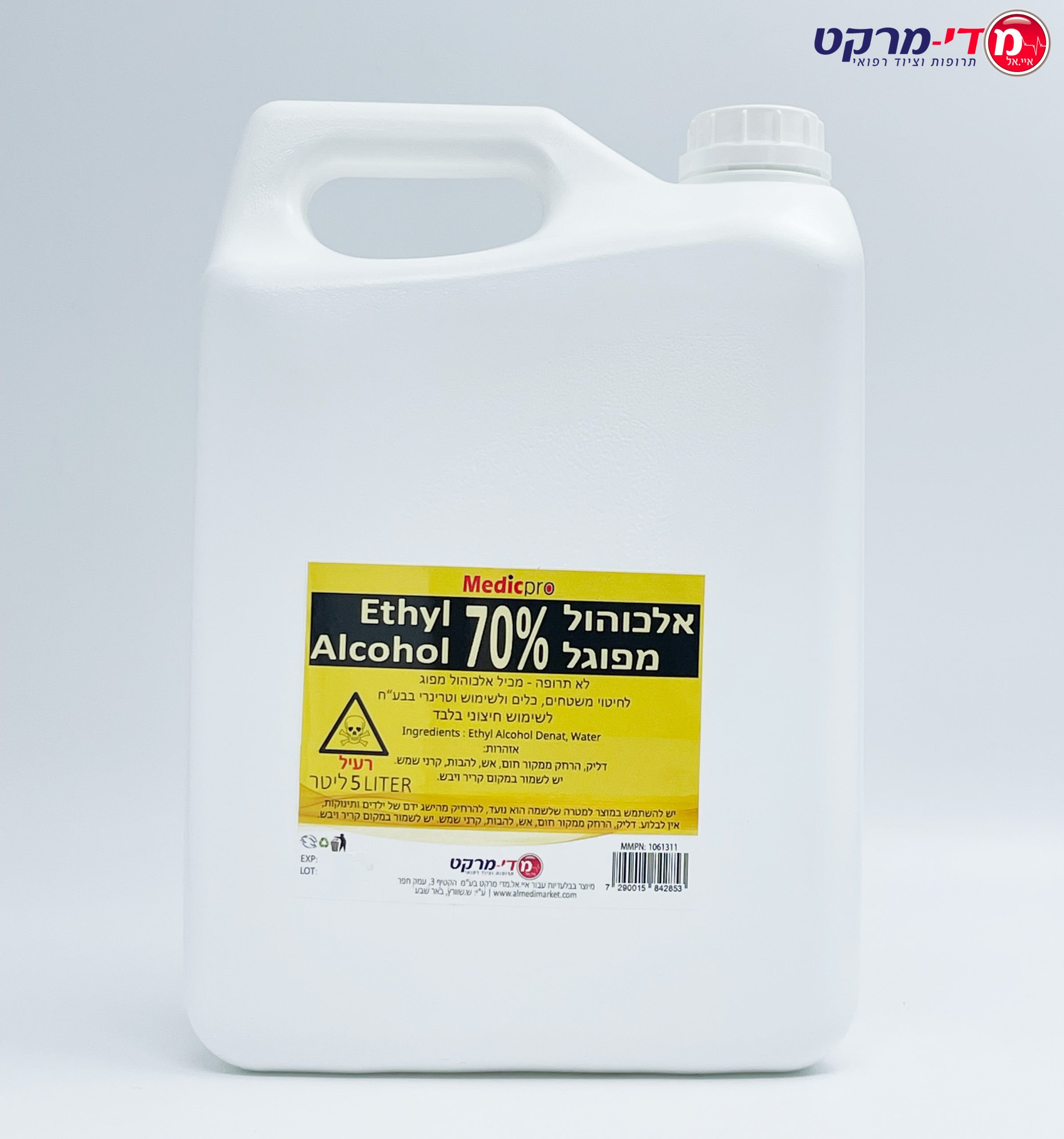 / אלכוהול מפוגל 70% 5 ליטר מדיקפרו