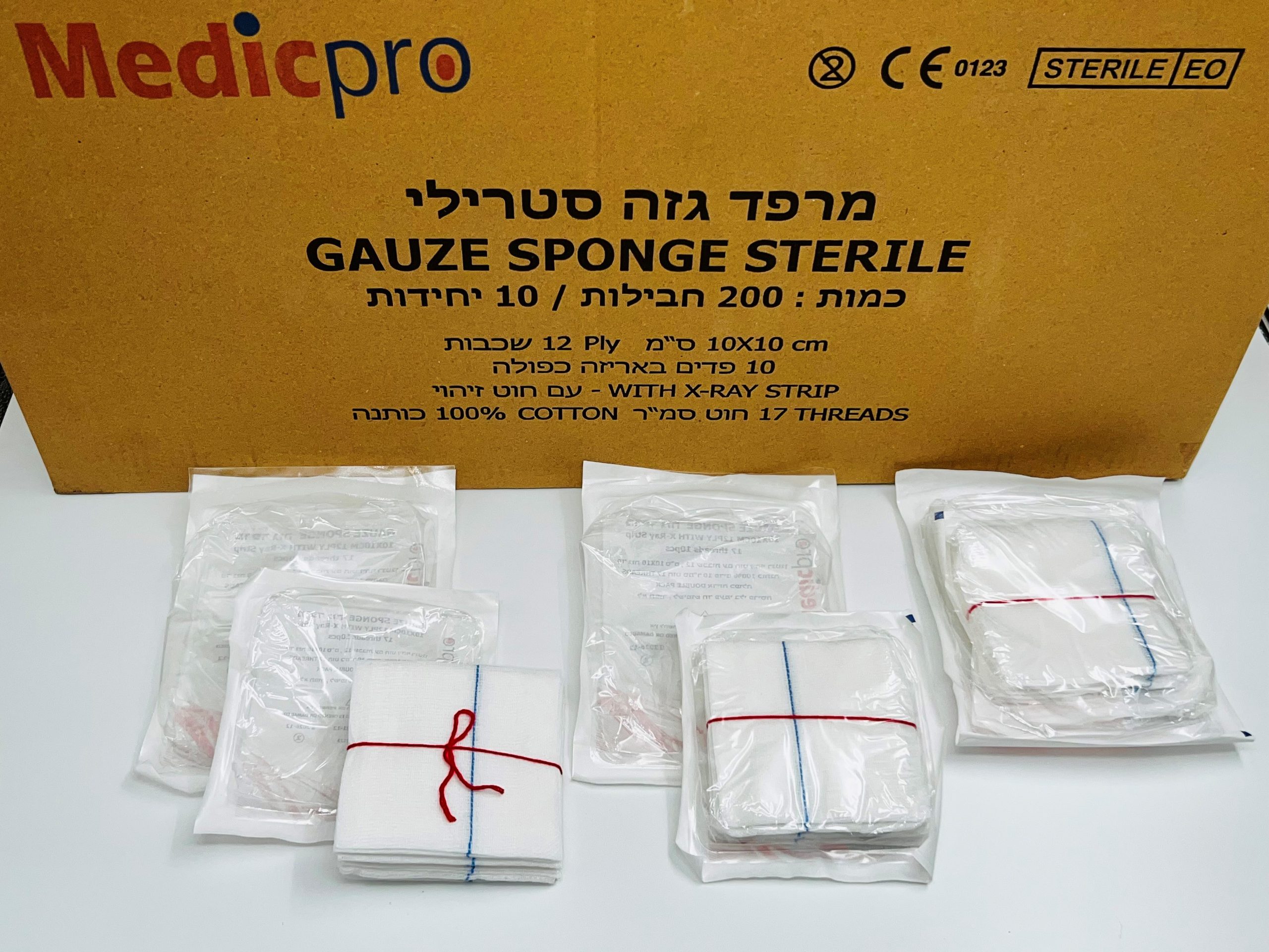 פד גזה סטר' א.כפולה 10X10 ס"מ 12שכ' 2000 X-Ray יח'