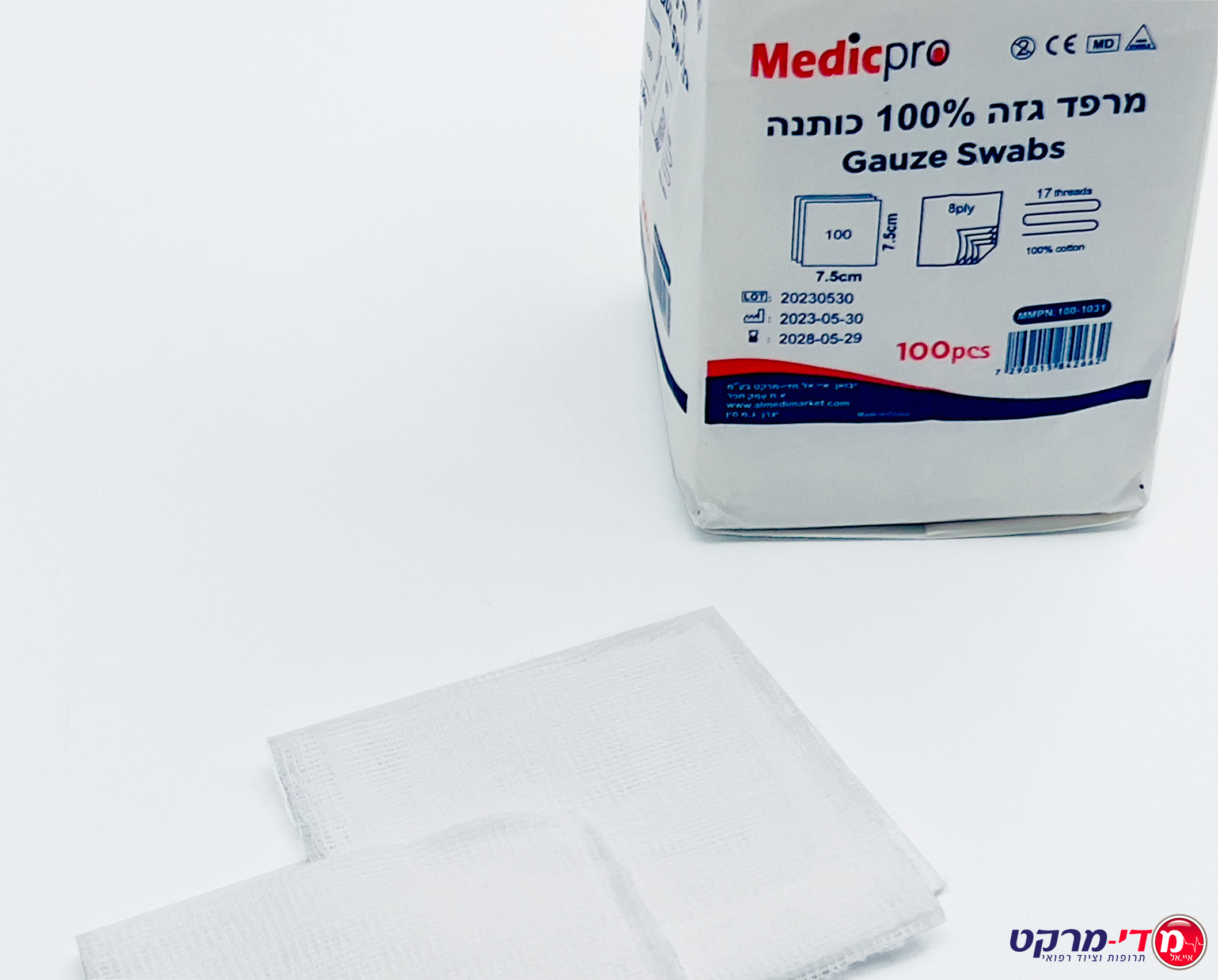 / פד גזה 7.5*7.5 ס"מ,8 שכ',17 חוט,מדיקפרו 100