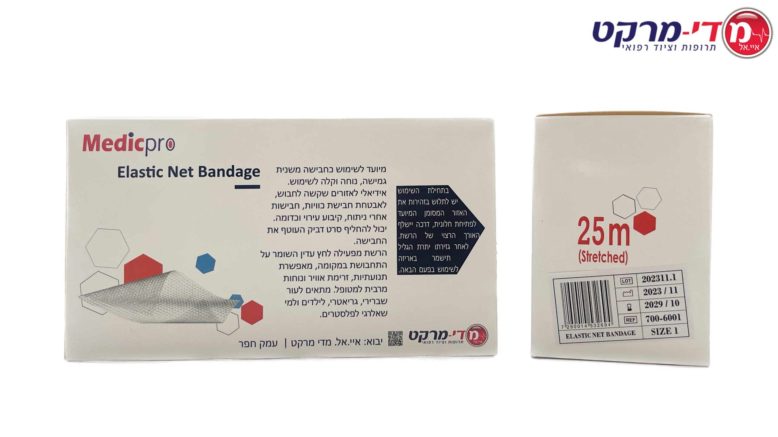 / רשת חבישה אלסטית 25 מטר מידה 1 מדיקפרו