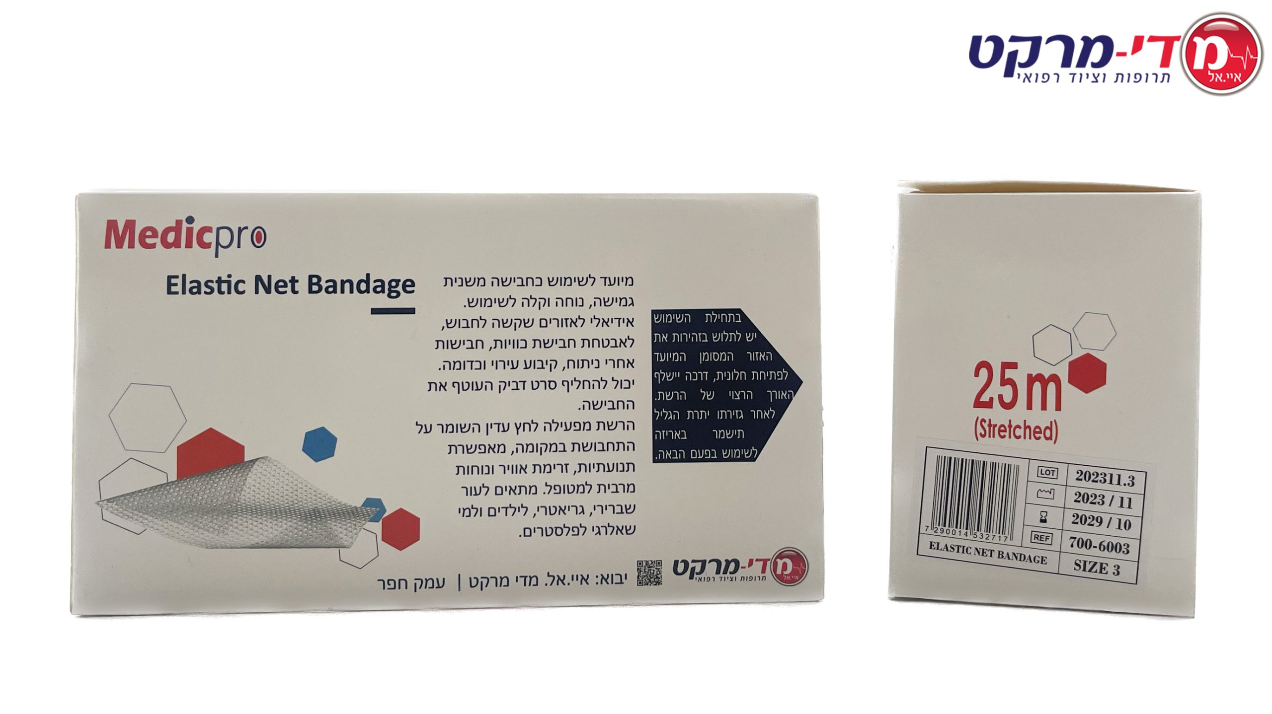 / רשת חבישה אלסטית 25 מטר מידה 3 מדיקפרו